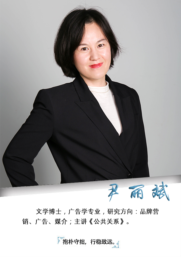 尹丽斌,2021年毕业于中国传媒大学广告学专业,获文学博士学位。现任广告学专业主任。2021至今,主讲课程《公共关系学》。研究成果发表在国际会议、《浙传学报》、《品牌研究》等期刊平台,指导学生作品荣获第八届河北省“互联网+“大学生创新创业大赛铜奖2项,在第十四届全国大学生广告艺术大赛荣获国家三等奖2项、省级奖3项。