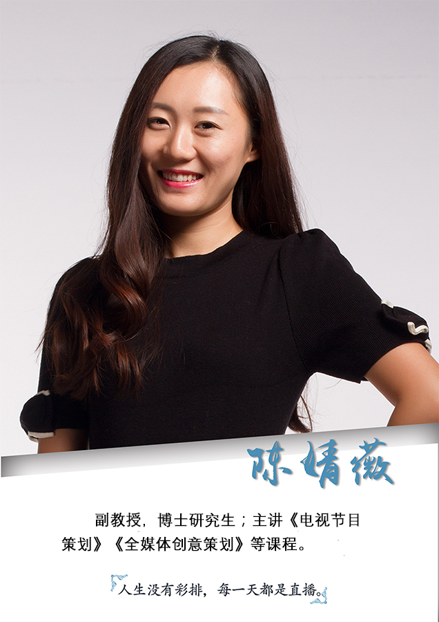 陈婧薇,女,1984年生,江苏南京人。2007年毕业于中国传媒大学广播电视编导专业,获文学学士学位,2011年毕业于中国传媒大学广播电视艺术学专业,获文学硕士学位,2021年毕业于河北大学传播学专业,获文学博士学位。现为广播电视编导专业主任,ac米兰官方网站新闻传播学院副教授,影视艺术系主任,艺术学理论专业、广播电视专业硕士生导师。中国高校影视学会会员。主要研究方向为:文化传播、电视文艺学、新媒体传播。主讲课程:全媒体节目策划、新媒体概论、艺术创作方法、新媒体影像创作
