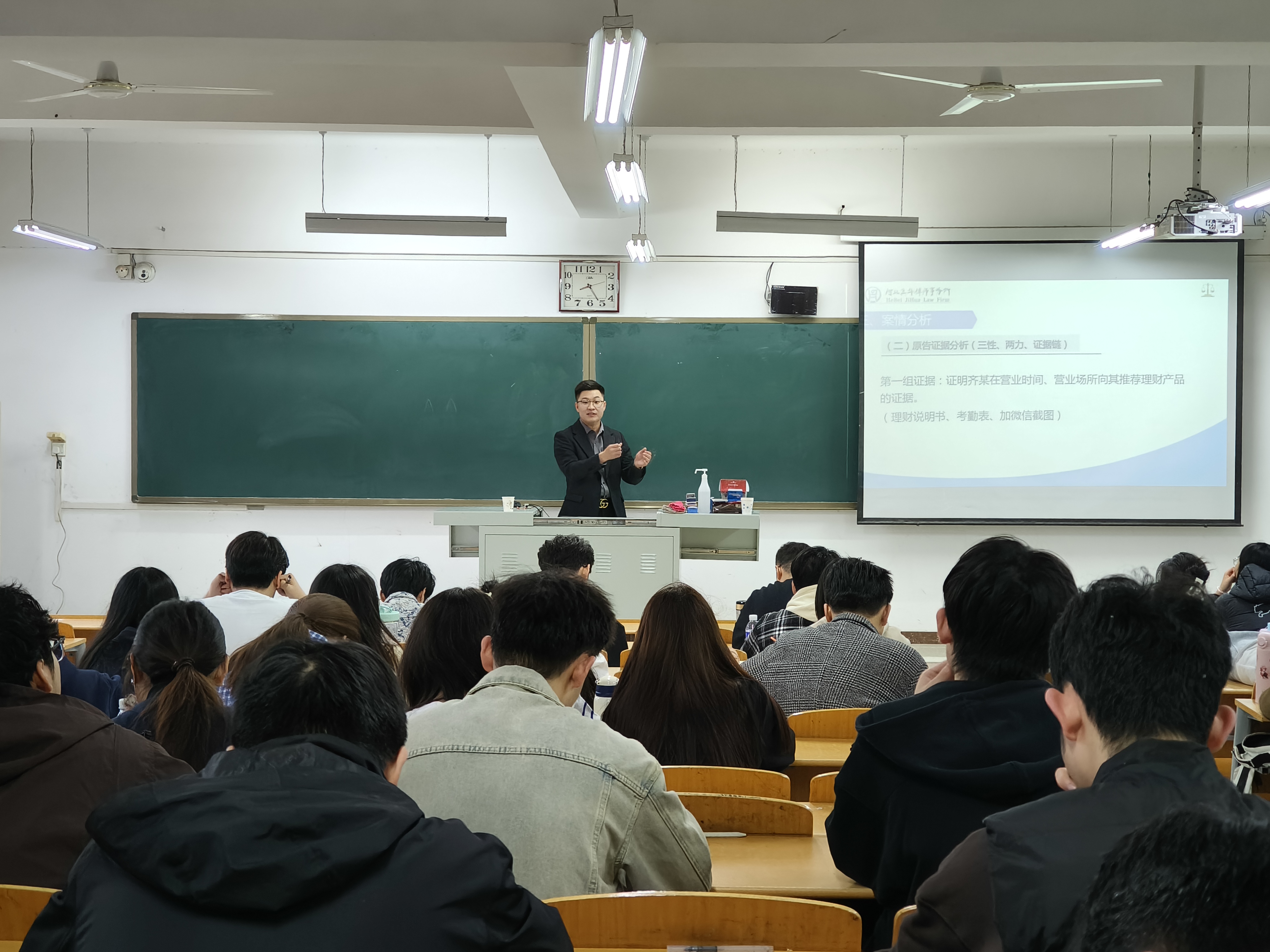 在讲座中,卢鹏鹏律师精选了一起具有代表性的理财产品纠纷案件,从案情简介,案例分析,事实呈现等方面展开,并对证据使用的要素,以及案例的证据分析与组织等方面进行了详细的讲解。此次讲座为学生提供了一个实际案例中证据应用的指导,帮助他们理解在实际案件中如何准确、全面地呈现事实,评估证据的可信度,并构建有说服力的证据链。讲座期间,卢鹏鹏律师还与在场学生进行了积极的互动交流,为同学们解疑释惑。卢律师根据自己丰富的工作经验耐心的回答了同学们关于职业选择,案源开拓等法学专业实际发展方面的问题,针对不同发展路径给同学们提出了针对性的指导建议。同学们纷纷表示,通过本次讲座,他们对法律实务有了更加清晰的认识,特别是在证据的应用和组织方面,为他们未来的法律职业生涯打下坚实的基础。 阅读次数:1737