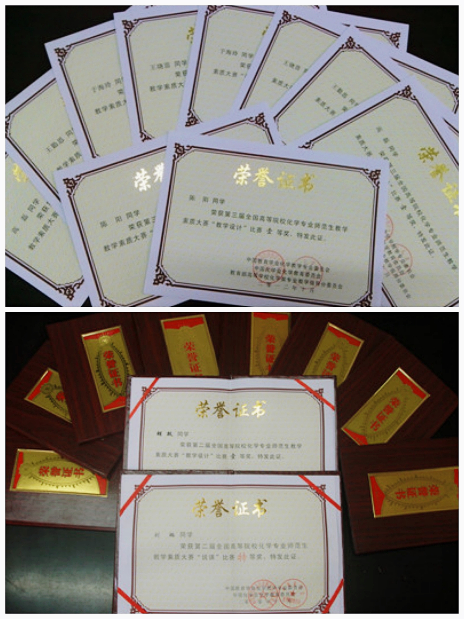 学科竞赛: 理学部历来重视师范类学生的专业技能培养,通过课堂教学、顶岗培训、顶岗实习等途径提升师范生的教学技能和综合素质。化学专业学生连续五届参加全国高等院校化学专业师范生教学素质大赛,共有4名同学荣获特等奖;12名同学荣获一等奖,58名同学荣获二等奖,33名同学荣获三等奖。 考研就业: 近5年来,化学专业就业率连续保持在98%以上,考研上线率达40%,多名同学以优异成绩考入北京理工大学、北京化工大学、北京师范大学、天津大学、南开大学、郑州大学、云南大学、南京师范大学、华中师范大学、陕西师范大学、ac米兰官方网站等高校攻读硕士研究生;多名同学在中国科学院大学、北京理工大学、澳大利亚伍伦贡大学、南开大学、兰州大学、东北师范大学等国内外著名大学和研究所攻读博士学位;多名学生在石家庄第九中学、石家庄第十七中学、河北师大附属实验中学、石家庄精英中学、邢台市第五中学、邢台市第十九中学等学校从事中学化学教师工作;另有部分同学在企业和科研机构从事与化学有关的科研、开发与生产等工作。