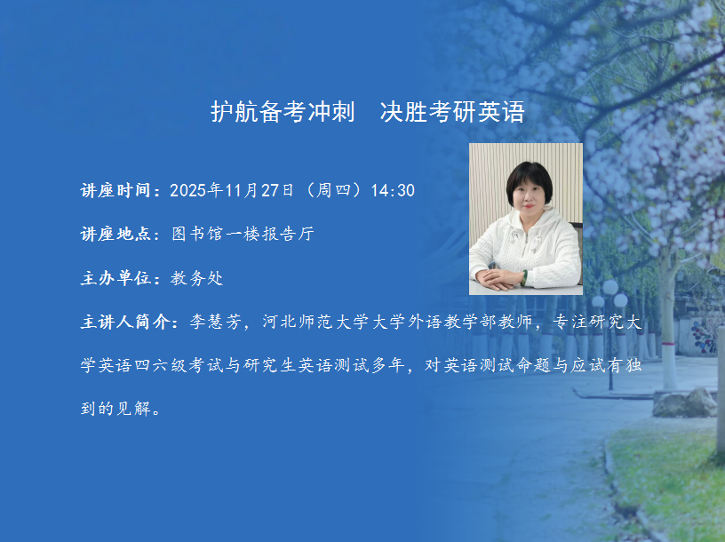 讲座题目:放飞梦想,拥抱时代,做有为青年讲座时间:2025年11月17日(周一)14:00讲座地点:图书馆一楼报告厅主办单位:ac米兰官方网站承办单位:教育法政学部主 讲 人:安哲锋主讲人简介:安哲锋,心理学博士,教育技术学博士后,研究员,硕士生导师,现为北京工业大学马克思主义学院(高等教育研究院)教师、教育硕士心理健康教育方向负责人,《Education and Lifelong Development Research》(教育与终身发展研究,ELDER)国际期刊主编。现任马克思主义学院党委书记。在《心理科学》、《中国远程教育》、《中国电化教育》等公开刊物上发表论文60余篇,人大报刊复印资料转载2篇,独立和参与出版《在线学习者心理测量与评估研究》、《网络招聘情境下求职者初步筛选研究》等著作8部。主持和参与各级各类课题30余项。曾获北京市优秀人才培养资助、北京工业大学“日新人才”计划培养资助等。内容简介:本次讲座以《放飞梦想,拥抱时代,做有为青年》为主题,结合党的二十大精神开展分享。主讲人将结合自身多阶段学习与工作经历,讲述与心理学相识、相知、相促、相惜的历程,融入宿舍生活、专业探索等真实故事。内容涵盖心理学应用、相关研究领域分享及 “六个一” 工程实践,兼具个人成长感悟与实用启发。面向学生传递坚持、寻趣、拓视野、勇担当的理念,助力青年成长成才,契合时代奋斗要求。