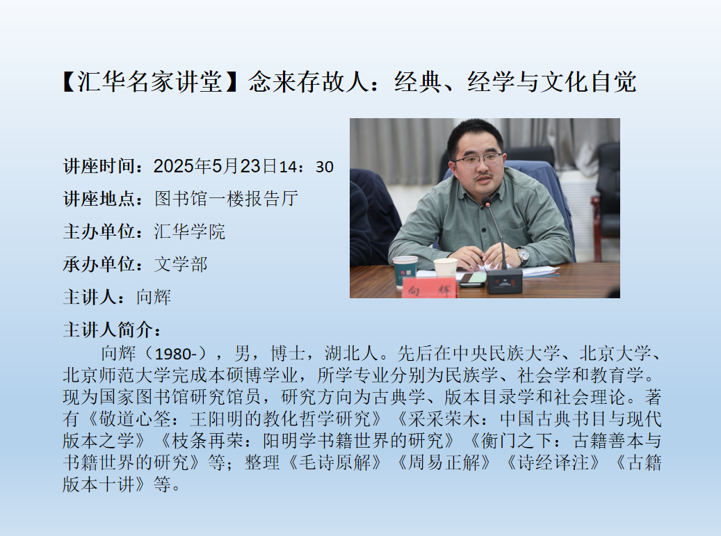 • 【汇华名家讲堂】念来存故人:经典、经学与文化自觉