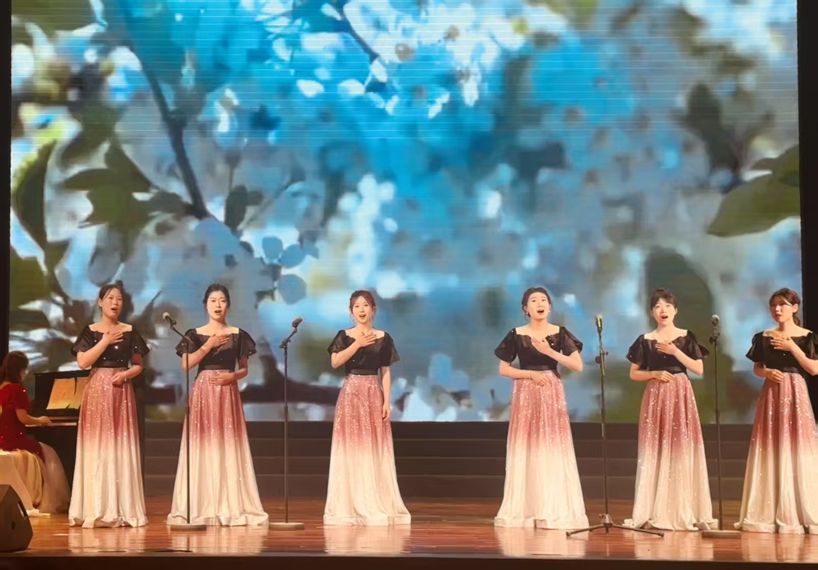 4月24日晚,艺术学部主办的“声如夏花,音你绽放”声乐专场音乐会在音乐厅精彩上演。本场音乐会不仅以精湛的演出拉开本学期艺术实践系列活动的序幕,更以悠扬的歌声致敬艺术学部坚持十五载的舞台实践育人传统,为师生带来一场视听交融的艺术盛宴。艺术学部部长秦笑笑,副部长及部分专任教师出席了本次演出。