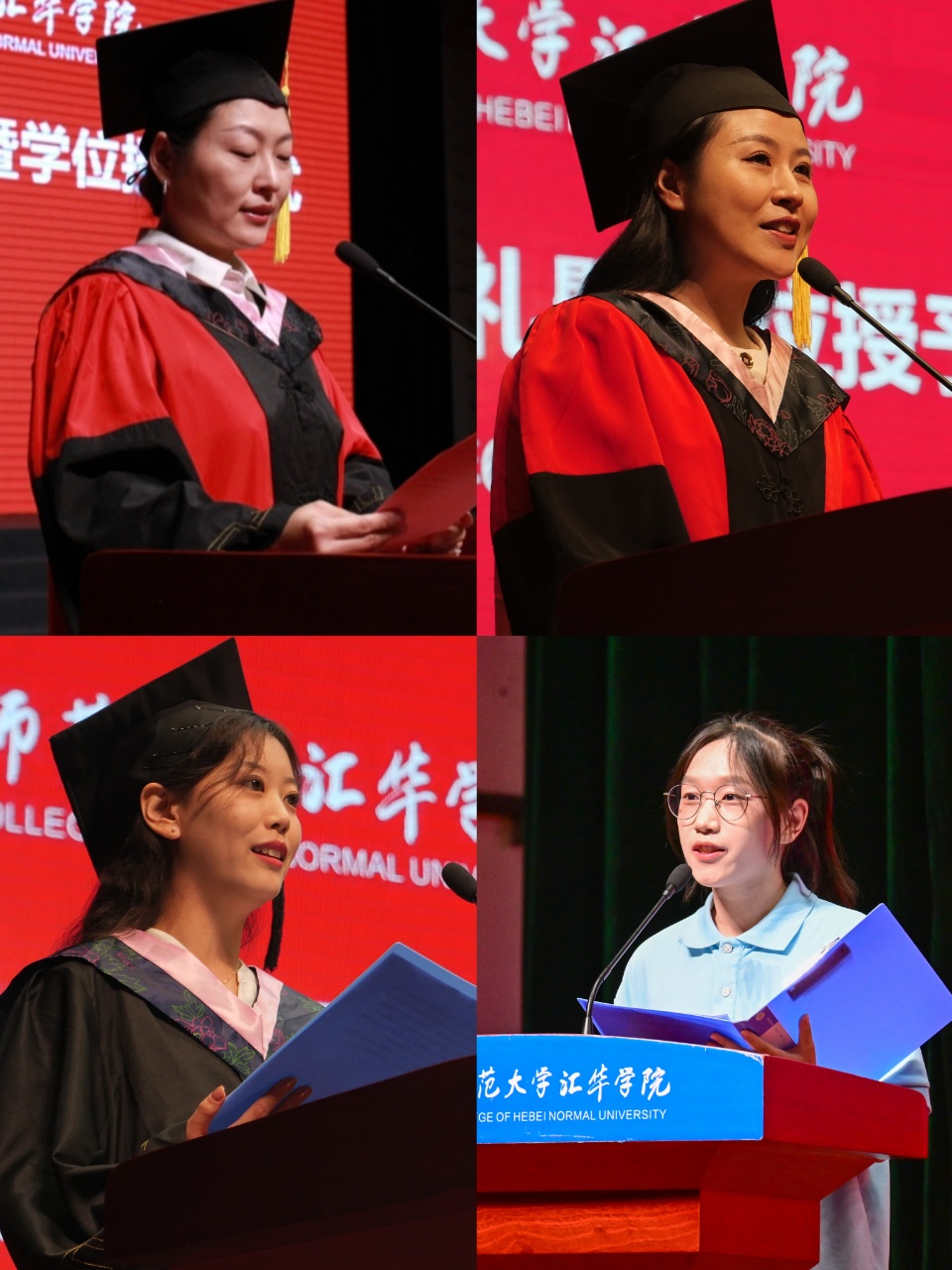 在毕业典礼上,师生情谊与青春誓言交织。教师代表表示,希望毕业生们能够将所学知识转化为服务祖国、服务社会、服务人民的实际行动,不负青春韶华,不负时代重托。在校生代表为毕业的学长学姐送上了祝福,表示要以学长学姐为榜样,用知识和智慧,去创造属于自己的辉煌人生。毕业生代表回忆了大学四年的时光,表达了对母校和师长的感恩和眷恋。