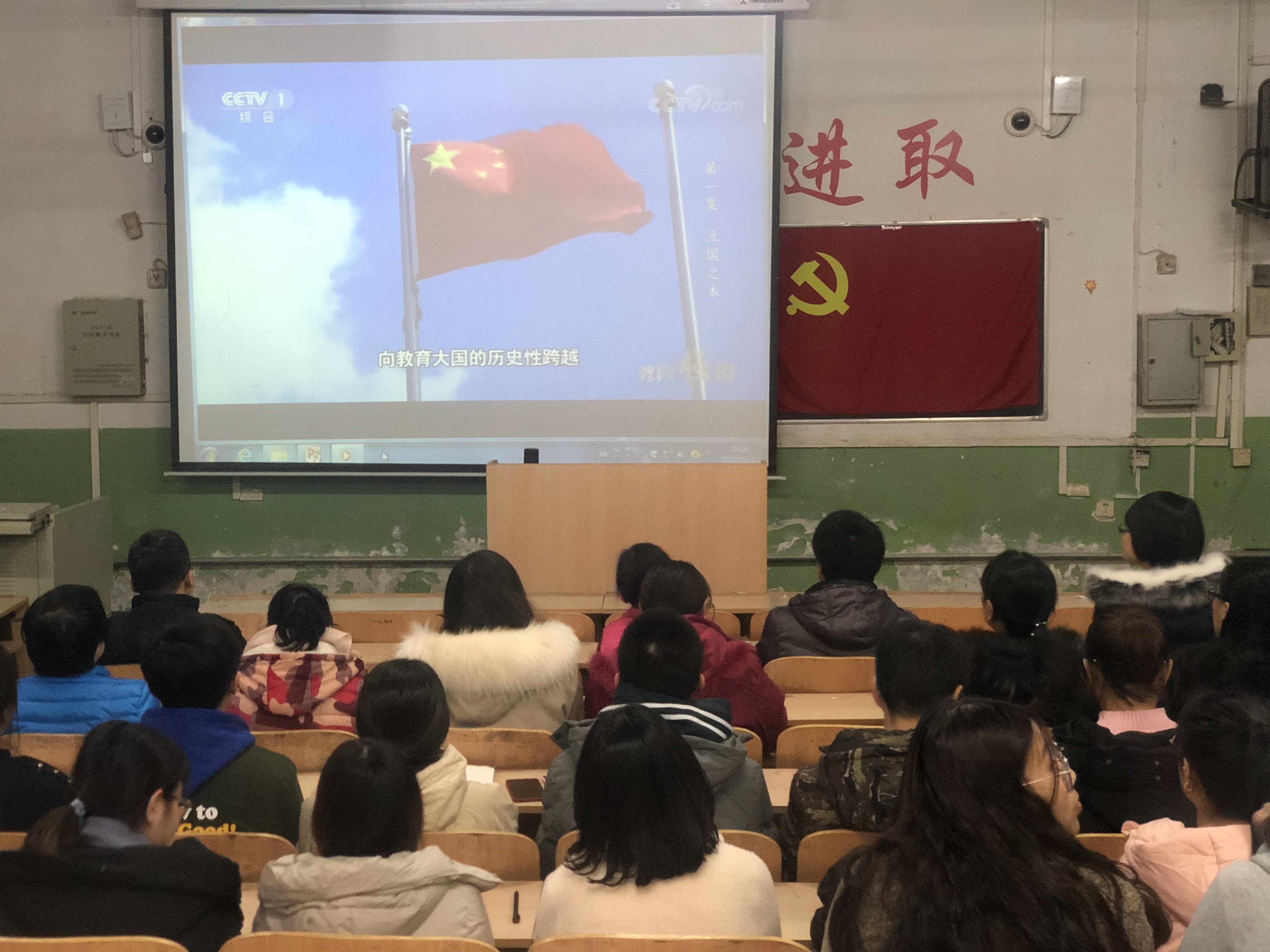 2019年12月12日在第一教学楼113教室,工学部党总支组织师生党员集中学习《教育部办公厅关于组织师生观看国庆70周年成就展及有关文献纪录影视作品的通知》,集中观看《教育强国》第一集。