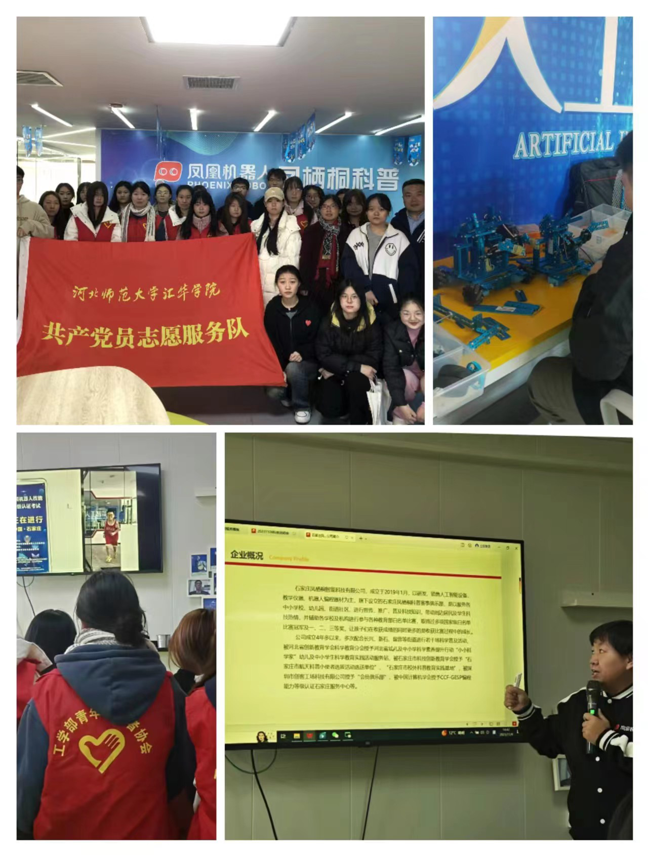 为促进产业教育的双向推进,丰富学生实践经验,共享科技未来,11月9日、16日,工学部“人工智能AI筑梦促成长”志愿服务队受邀前往凤凰机器人凤栖桐科普单位,围绕机器人教育方向和人工智能志愿服务方向进行交流和探讨。工学部党总支高度重视本次活动,在本学期深入学习贯彻习近平总书记教师节重要指示精神的基础上,积极倡导用行动践行教育家精神,在前期精心筹划、认真筹备下,进一步安排党员教师带队前往,用行动将师德师风建设落到实处。