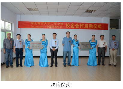 最后,举行了校企合作揭牌仪式,双方领导共同为“ac米兰官方网站实习(实训)基地”和“Encompass technologies (中国研发中心)IT人才培养基地”揭牌。